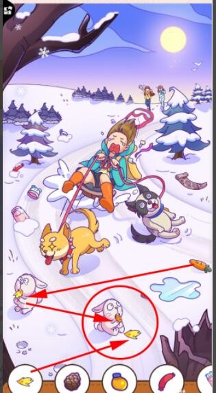 拖动雪地上的胡萝卜交换兔子手里的干草。
