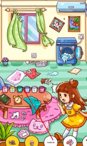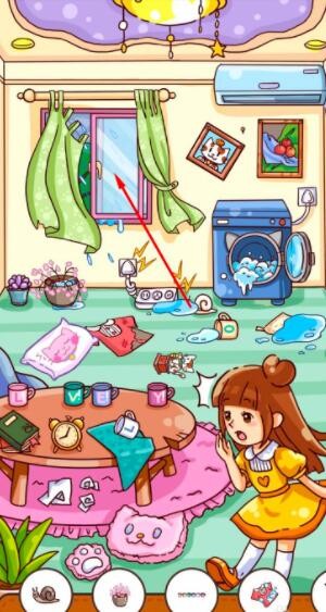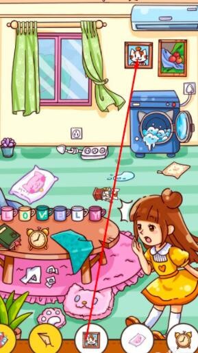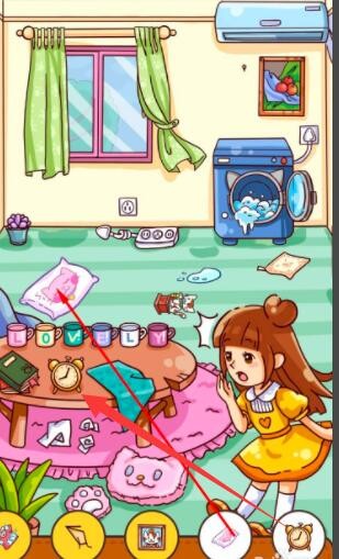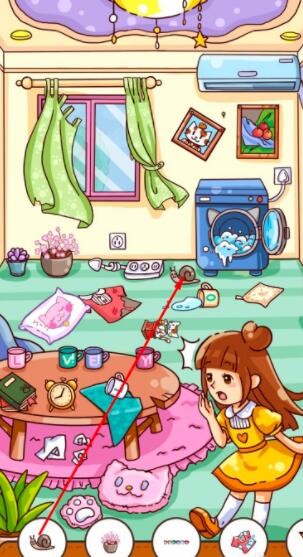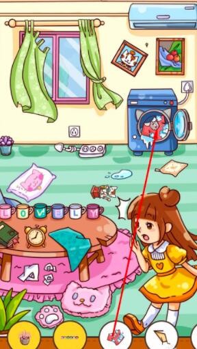 将地上的脏衣服拖到洗衣机里。点击洗衣机里的衣服,即可获得第四件物品。