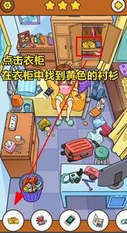 点击衣柜,在衣柜中找到黄色的衬衫。
