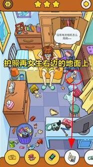 护照再女生右边的地面上,点击即可。