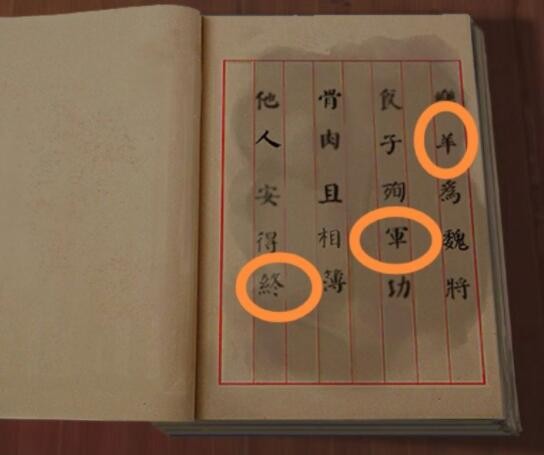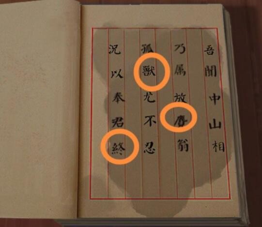 有本书,淋上油,用油泡泡显示出字儿来。找到木块上五个字在五言诗中对应的位置。获得大牢钥匙。