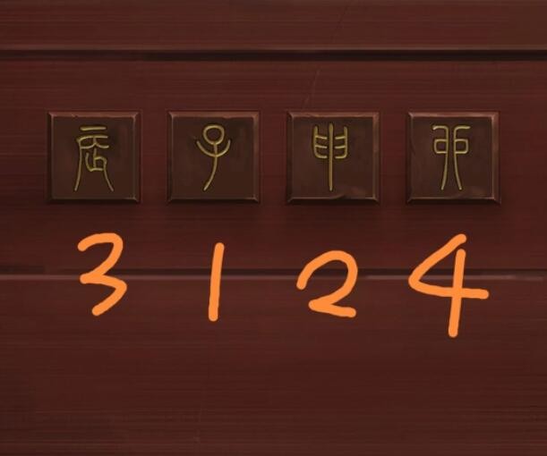 右边柜子上盒子,按刚才的顺序点四个字符。