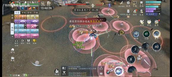 8、全场最恐怖技能来了,疯狂锁定黄圈,至少会锁六个人,会在你脚下持续释放红圈,一直移动可以规避,吃到一个红圈那你可以双手离开手机了,最怕的是几个黄圈走一起了,全靠灵性,不过此红圈也可以消除场上陷阱,机制触发阶段血量75-70 45-40。