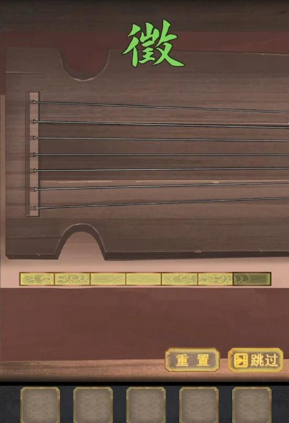 将【琴弦】装到琴上,按顺序弹奏【商、变徽、角、徽、商、徽】,在下面获得【瓷瓶-水】【黑棋子】。
