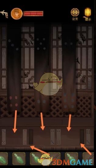 中间桌子上玩个小游戏,盯住红鲤鱼牌,找到鱼牌的位置,获得另一个骨牌和火瓷瓶。