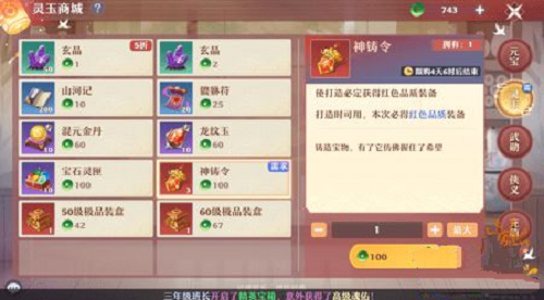 1、神铸令可以在灵玉商城里直接购买,花费一定的灵玉就可以。