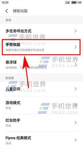 1)进入设置菜单打开【辅助功能】,打开后再点击【手势唤醒】选项。(如下图)