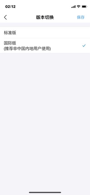 4、然后选择需要切换的版本为【国际版】,推荐费中国内地用户使用国际版;