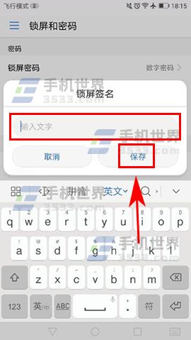 2)接着点击【锁屏签名】选项,这时就会弹出设置窗口,在输入框写上要设置的签名内容,再点击【保存】按钮,这样就会显示在锁屏界面了。(如下图)
