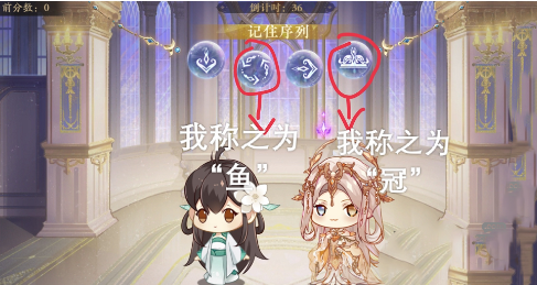 2、玩法技巧:右边的方向图标按照上下左右记,左边的两个图标小的称之为“鱼”,大的为“冠”。