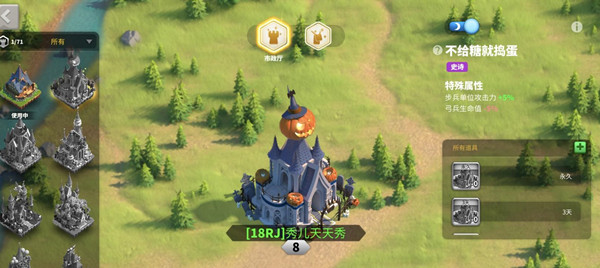 3、不给糖就捣蛋这个皮肤推荐步兵使用,可以提升步兵一部分攻击力。