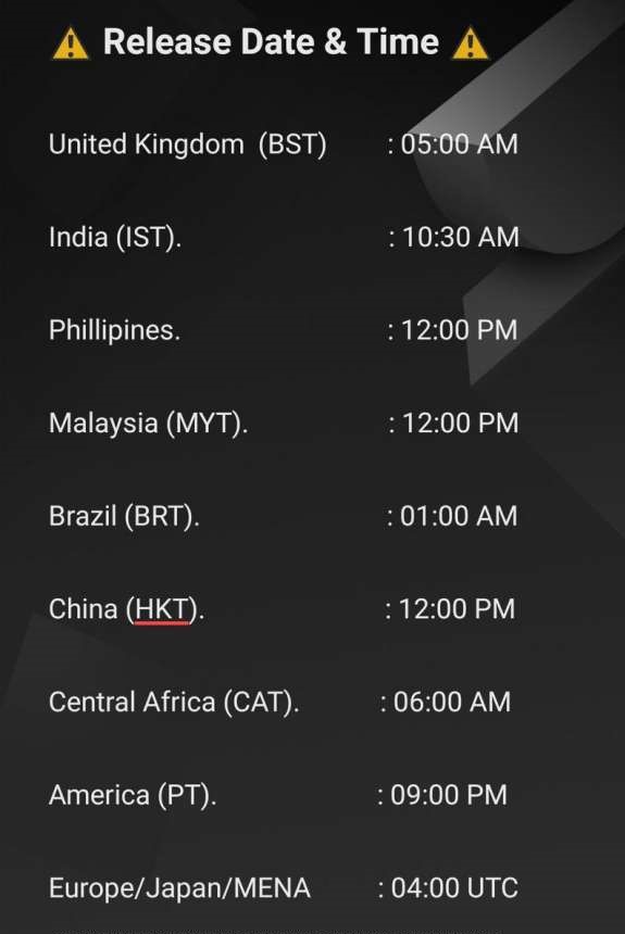 中国香港上线时间中午12点,日本服换算到中国时间已经可以进入,美服换算到中国时间要等到下午五点,其他服务器上线时间可在下图中查看