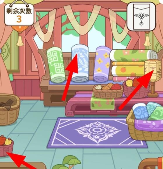步骤2:点击躲在左边布料后面的女人、躲在右边布料后面的女人、躲在窗户后面的女人、拿着拐杖的老人,这些都是看热闹的人。