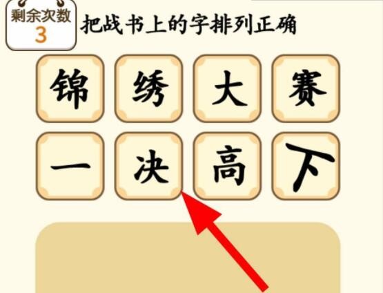 步骤6:最后把战书上的字按下图的顺序排列正确,完成战书内容的拼写。