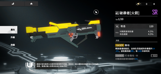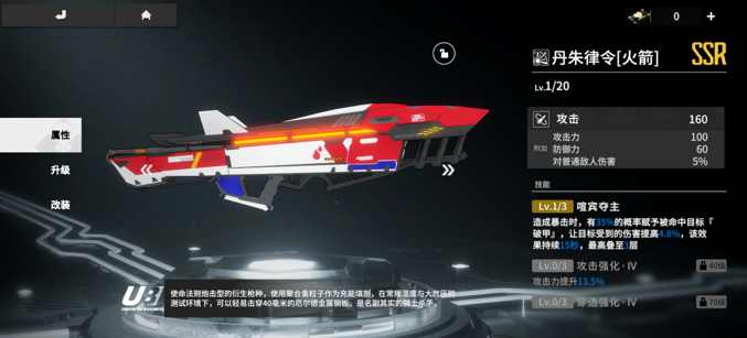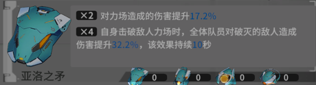 毕业装甲:亚洛之矛,破盾角色的唯一毕业选择,增加了破盾效率17.2%,同时BUFF全队32.2%增伤;