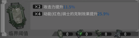 常规装甲:4件套【临界阈值】,攻击提高11.5%,克制伤害提高25.9%,更容易击穿力场;