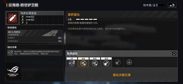 3.接下来就可以加点一下防空导弹系统,防空导弹系统的加点建议为:防空导弹伤害提升+主动技能。该系统的主动技能收益非常的高,它是每30秒作用一次然后提升40%的对空中单位命中率提升。