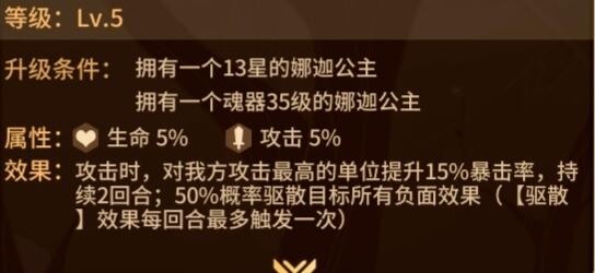 【评价】娜迦自身比较脆,中规中矩,只适用于爆发队伍。女娲、拉菲可以作为娜迦的上位替代。娜迦5级灵技+15%暴击,性能还算OK,值得一练。