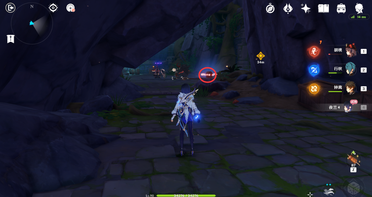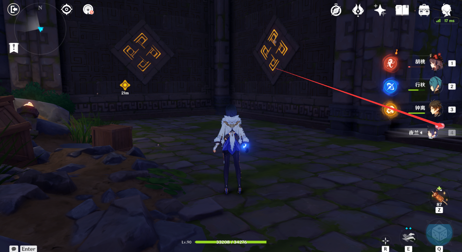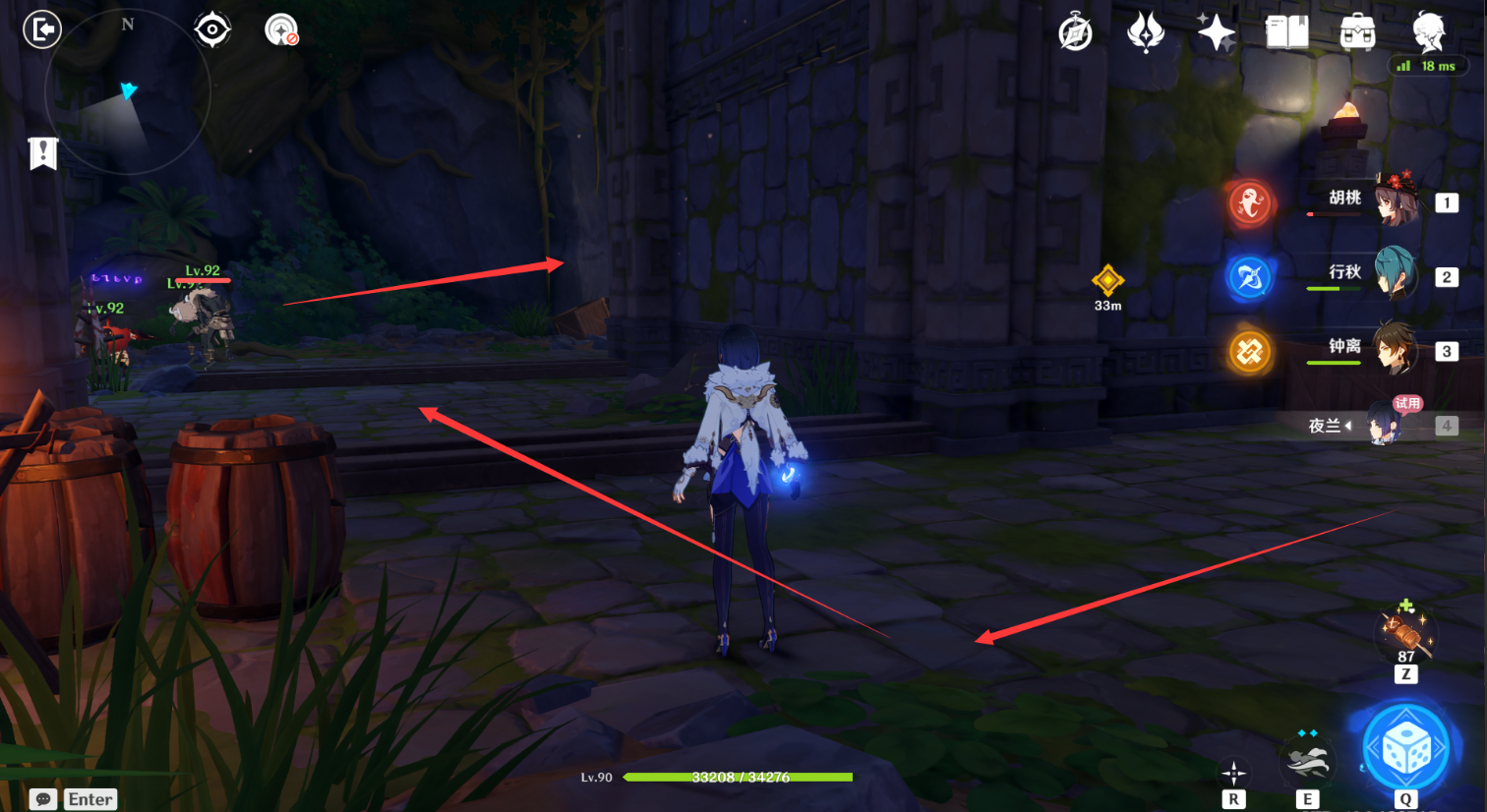 连续开两扇门后,可以看到火深渊法师和丘丘人,击败它们后往右走。