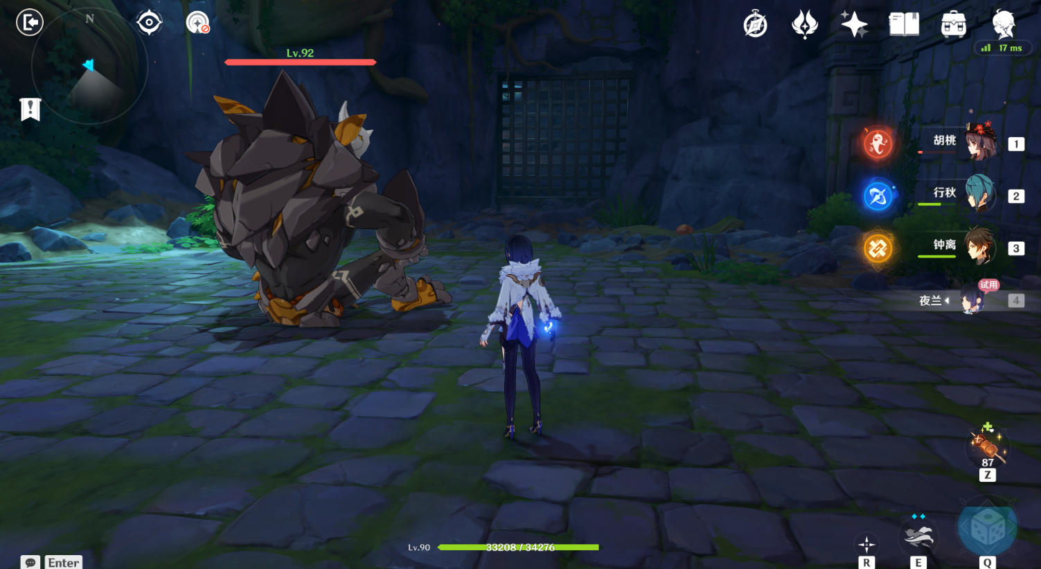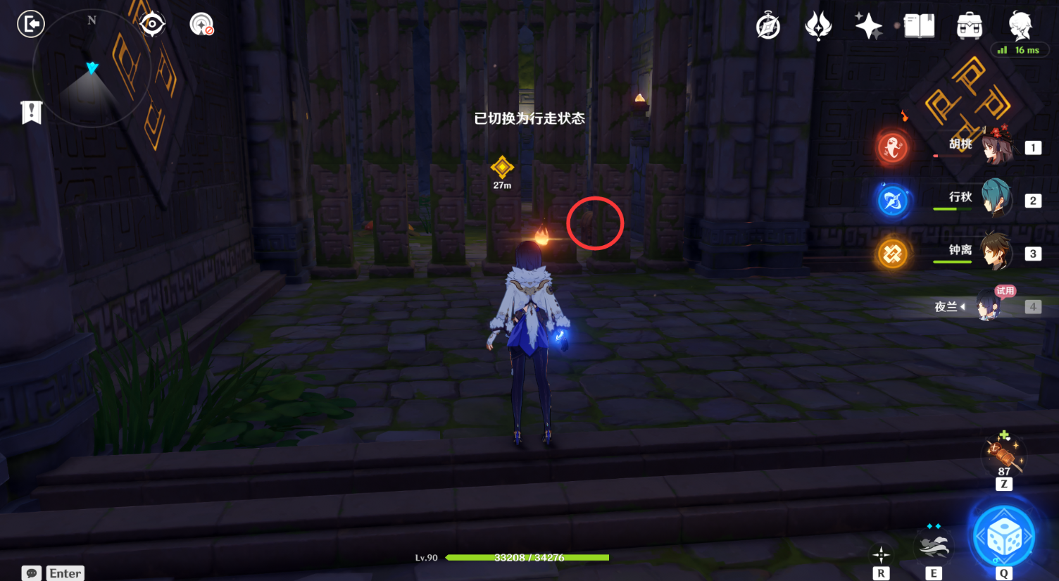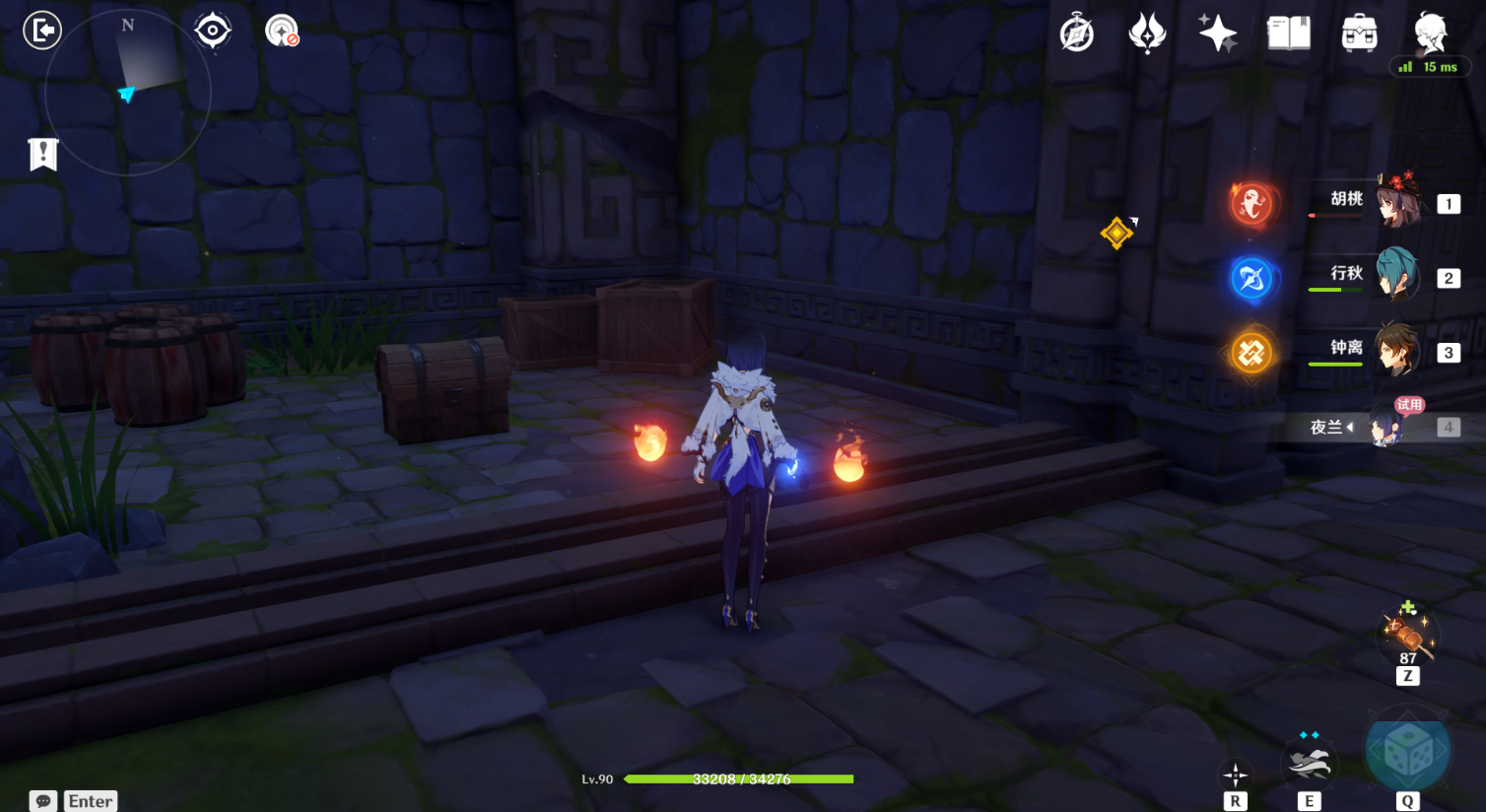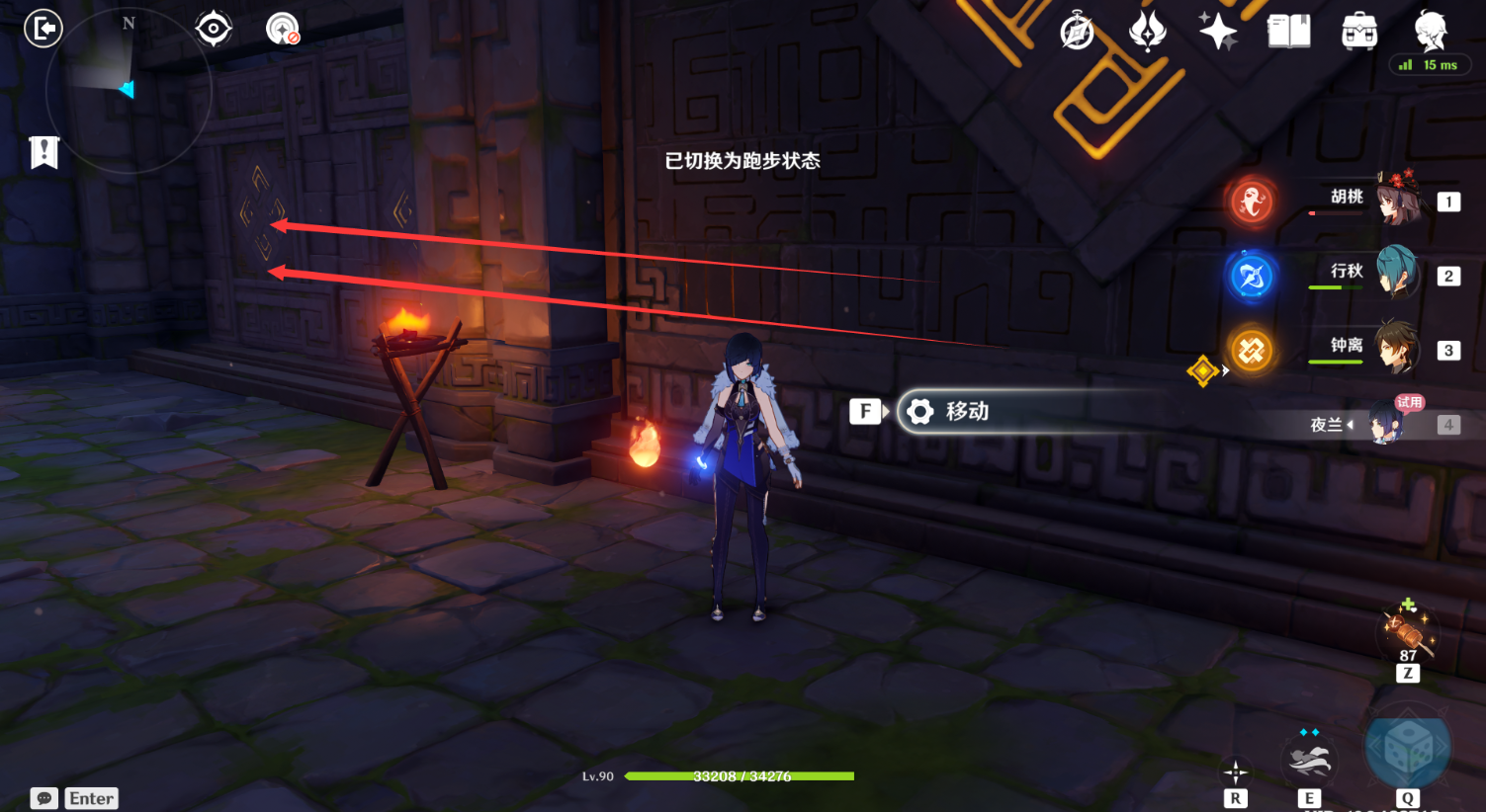 连续开两扇门后,可以看到火深渊法师和丘丘人,击败它们后往右走。