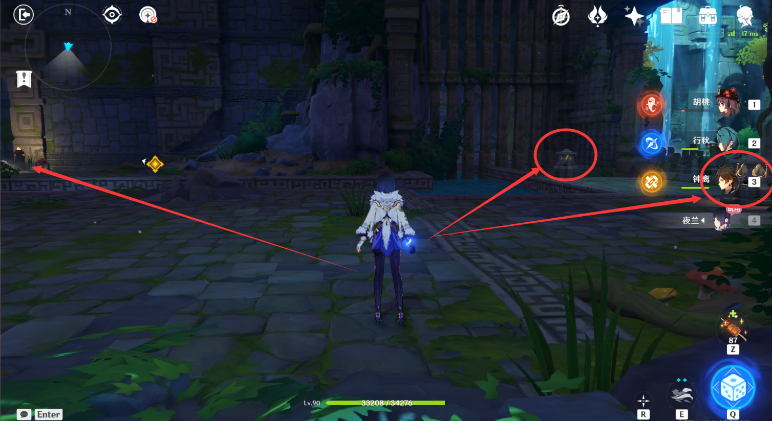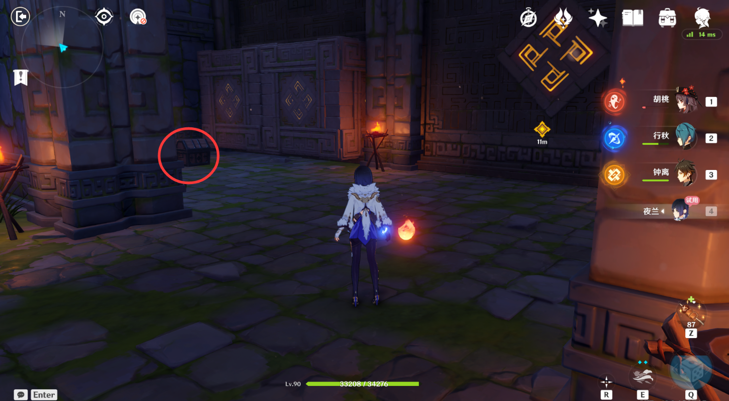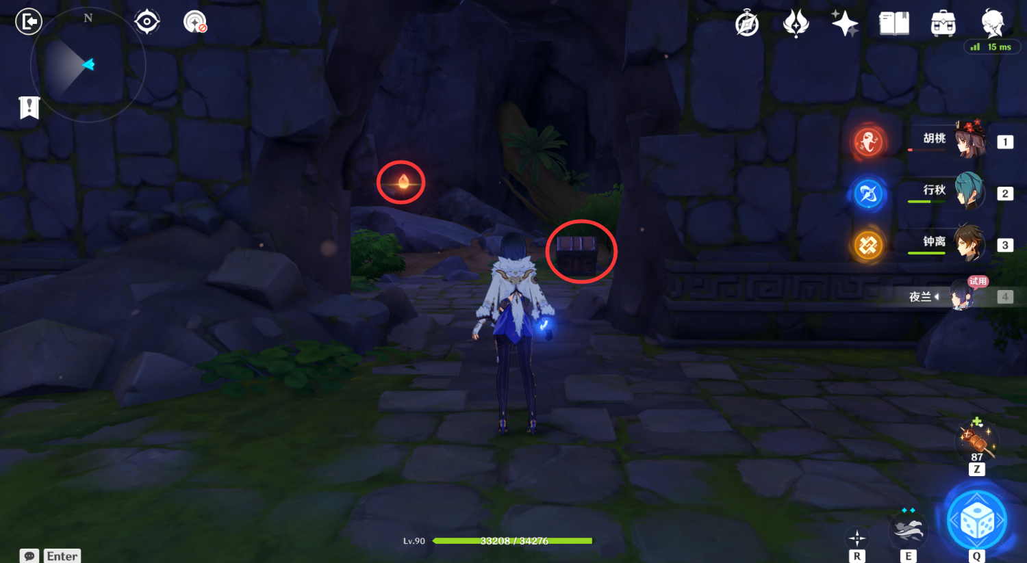 ②击败怪物后,拾取宝箱①,前往下个区域的石1门会开启。