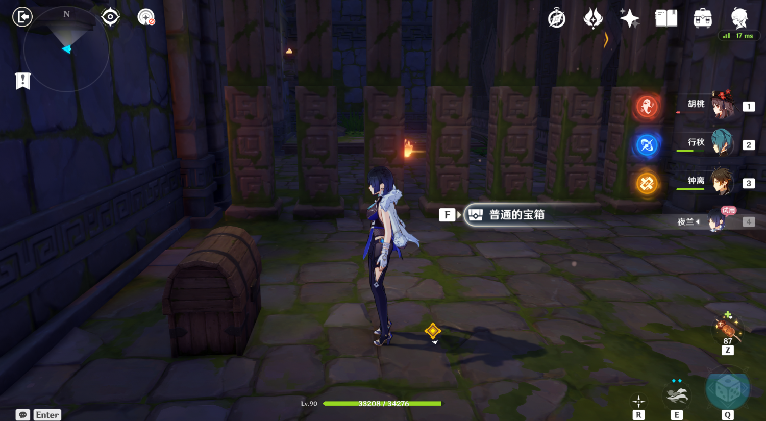 连开两扇门后可以拾取到刚才看到的石栏杆后的普通宝箱,这里是宝箱④。