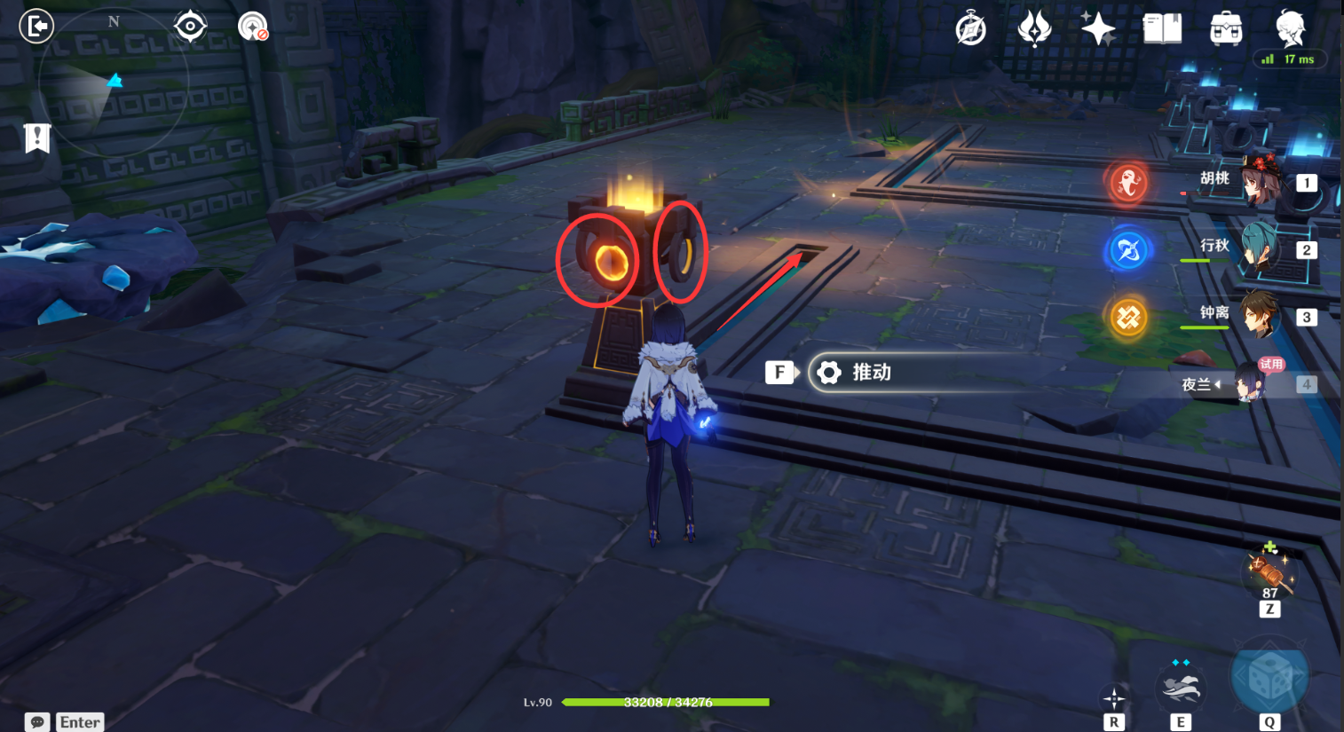 需要玩家将橙色的机关推动至地图“橙色聚光灯”瞄准的地方。