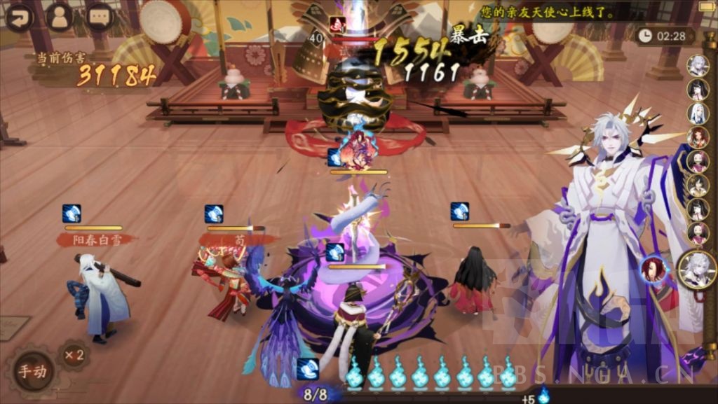 以往的测试中,涅槃之火与樱花妖奶会根据站位顺序改变结算顺序,所以测试中改变了神堕八岐大蛇与鬼王酒吞童子的站位顺序与出手顺序,实测结果没有影响。