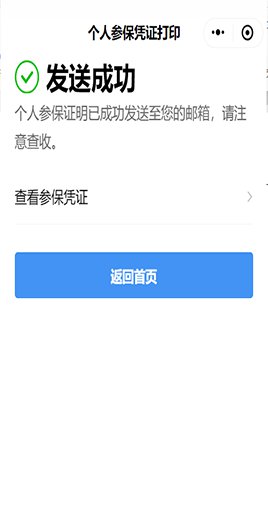 4、就能通过小程序查看养老、工伤、失业三险的参保证明了,或者登录邮箱下载打印。