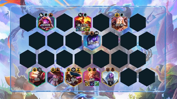 1、阵容组成:蕾欧娜、莉莉娅、图奇、塞拉斯、瑞兹、泰隆、赫卡里姆、派克、巴德