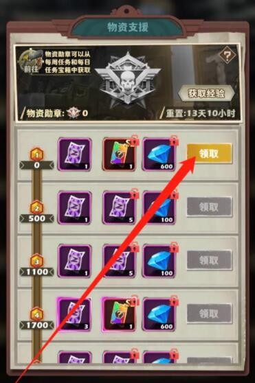 3、点击领取按钮,就可以领取对应的物资支援奖励了