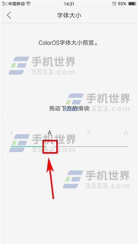2)接着点击【字体大小】,这时就能看到字体大小设置界面了,移动下方的滑块就能对字体的大小进行调整,调整后的实际效果也会在上方显示,根据自己的需要进行调整设置就行了。(如下图)