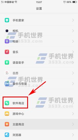 1)先打开手机的【设置】,在设置菜单里找到【软件商店】选项并打开。(如下图)