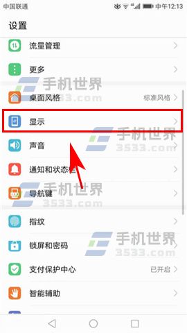 1)先打开手机的【设置】,进入设置菜单后继续点击打开【显示】选项。(如下图)