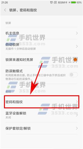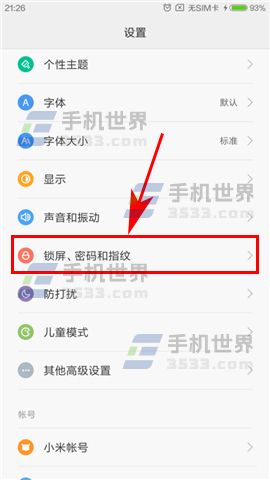 1)在设置菜单里打开【锁屏、密码和指纹】选项,打开后再继续点击【密码和指纹】。(如下图)