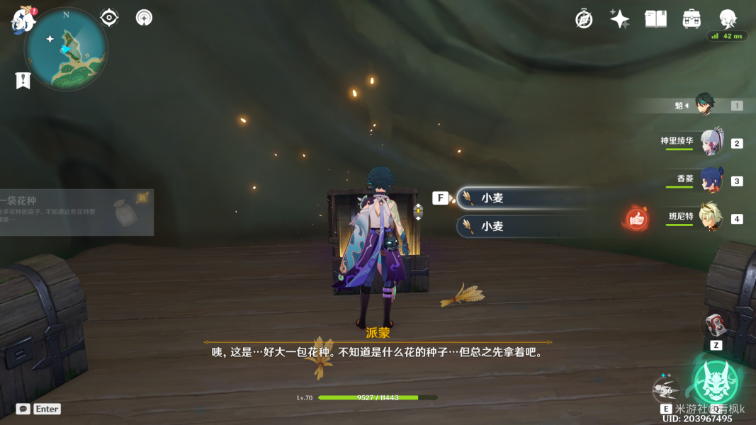 在我们第二天开到阿敬的宝箱后会获得任务道具「一袋花种」