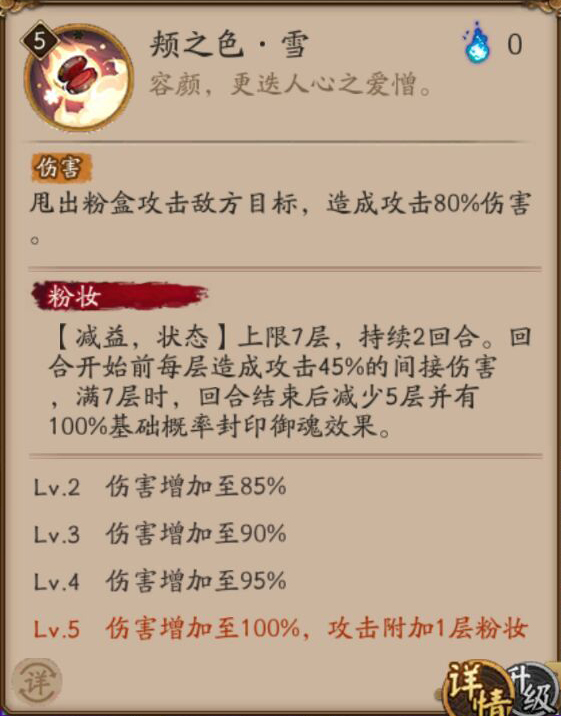 Lv.5 伤害增加至100%,攻击附加1层粉妆