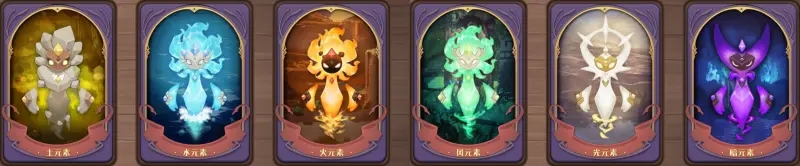 元素牌共有6大关卡分别对应获取“土、火、水、风、光、暗”6种元素微粒。每种关卡有3个难度:初级、高级、大师。3种难度的入场券均为1张,但收益分别为470 / 790 / 1120个元素微粒,所以有能力的尽可能挑战“大师”难度。