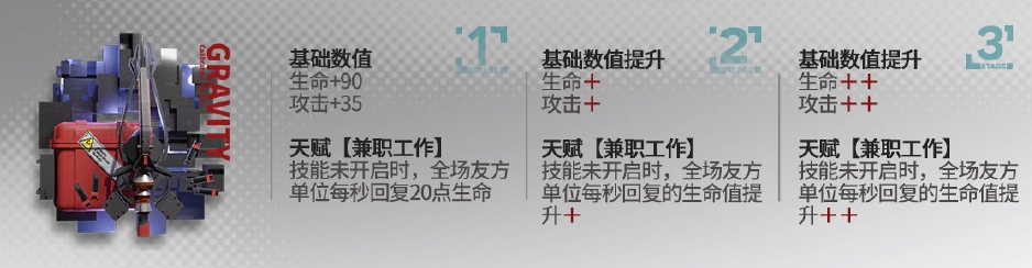 第二天赋在三潜状态下能够让原本的【技能未开启时,全场友方单位每秒回复20点生命提升】至【技能未开启时,全场友方单位每秒回复25(+5)点生命】