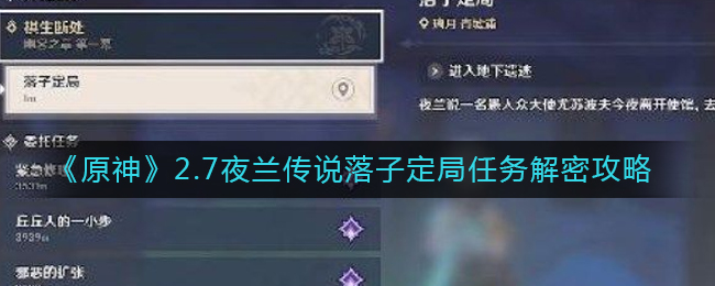 《原神》游戏中落子定局是2.7夜兰传说任务之一,很多玩家不知道怎么完成,下面,游戏爱好者小编就为大家准备了关于这方面的详细攻略,一起来看看吧!