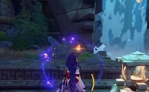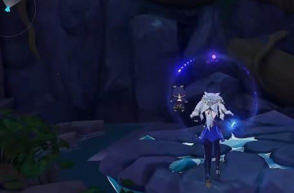 2、跟随任务指引来到瀑布下的石头上前往另一层。
