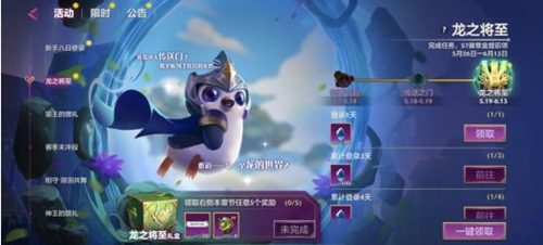 1、活动龙之将至第三篇章开启,每章共有7个限时任务。