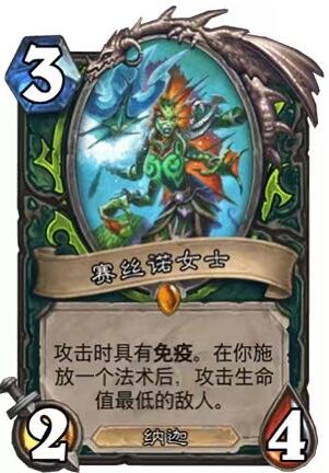 实际对战思路是开局先当自己是任务蛋正常做任务,通过【一决胜负】给各种法术或者斩杀组件减费,再用【赛丝诺女士】+双【叫嚣的中士】+各种低费法术直接开刷。