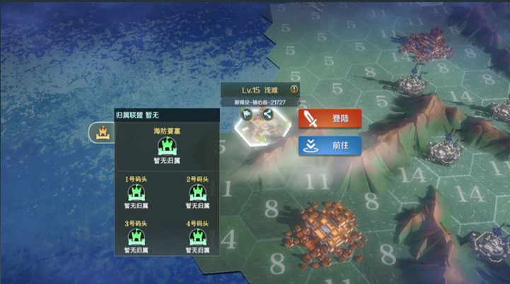 ⑤ 领主们在一小时的登陆作战内,占领领地区块中的海防要塞,便可登陆成功,以浅滩作为据点,向四周开拓领地。