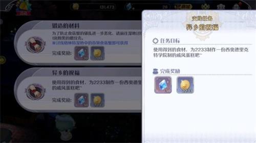任务目标:使用得到的食材,为2233制作一份西奥德里克特学院制的戚风蛋糕吧~