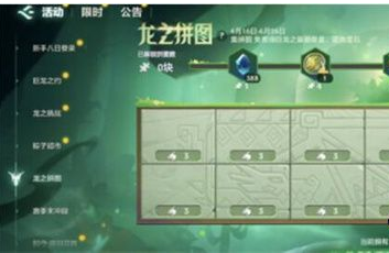 3、每消耗3个龙币级可以点亮一块拼图,累计点亮1、4、8、10块拼图会得到对应的奖励,一共10块拼图