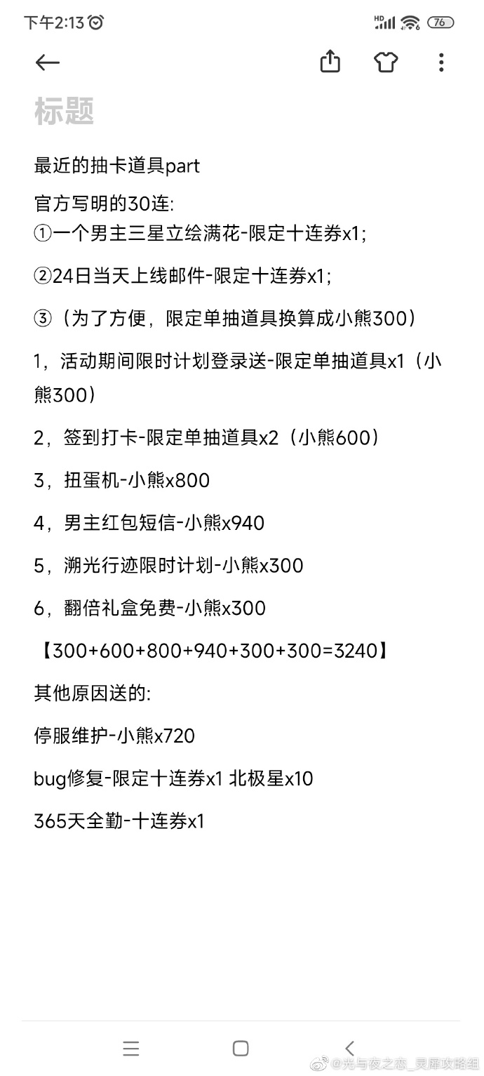 1⃣一个男主三星立绘满花-限定十连券x1;