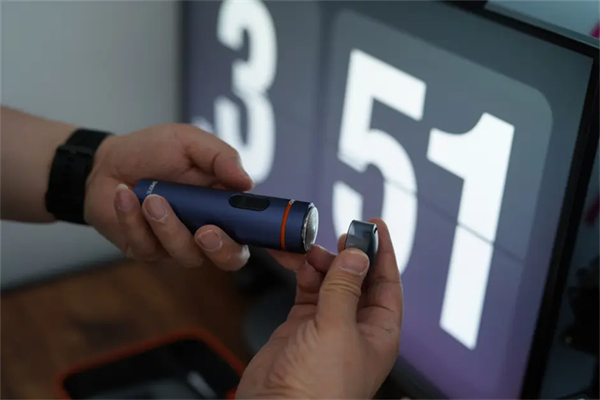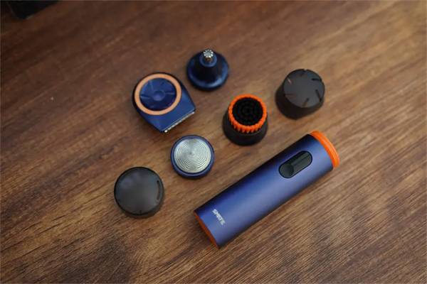 须眉剃须刀T6M安装鼻毛清洁配件后,因为颜色和主机较为统一,所以毫无违和感,中间橙色的区域点缀的也非常好看,清理鼻毛时只需稍微接触下鼻毛即可清理干净,在修剪鼻毛时6000rpm转速能够360°清理鼻腔毛发。