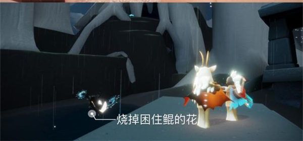 3.在雨林拯救被黑暗藤蔓困住的遥鲲:这个任务是要玩家烧掉困住鲲的花,完成第三个任务。