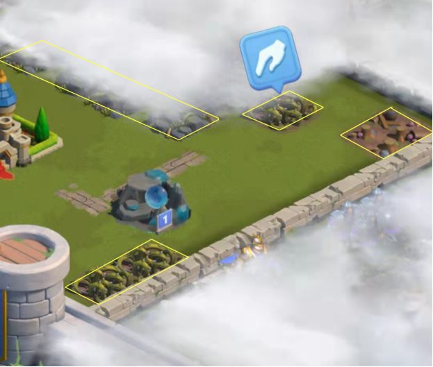 初始的城堡被笼罩在一片迷雾之中,一共分为9大区域,只有全部解锁,才能获得完整的城堡功能,因此这也是我们首日的核心目标。
